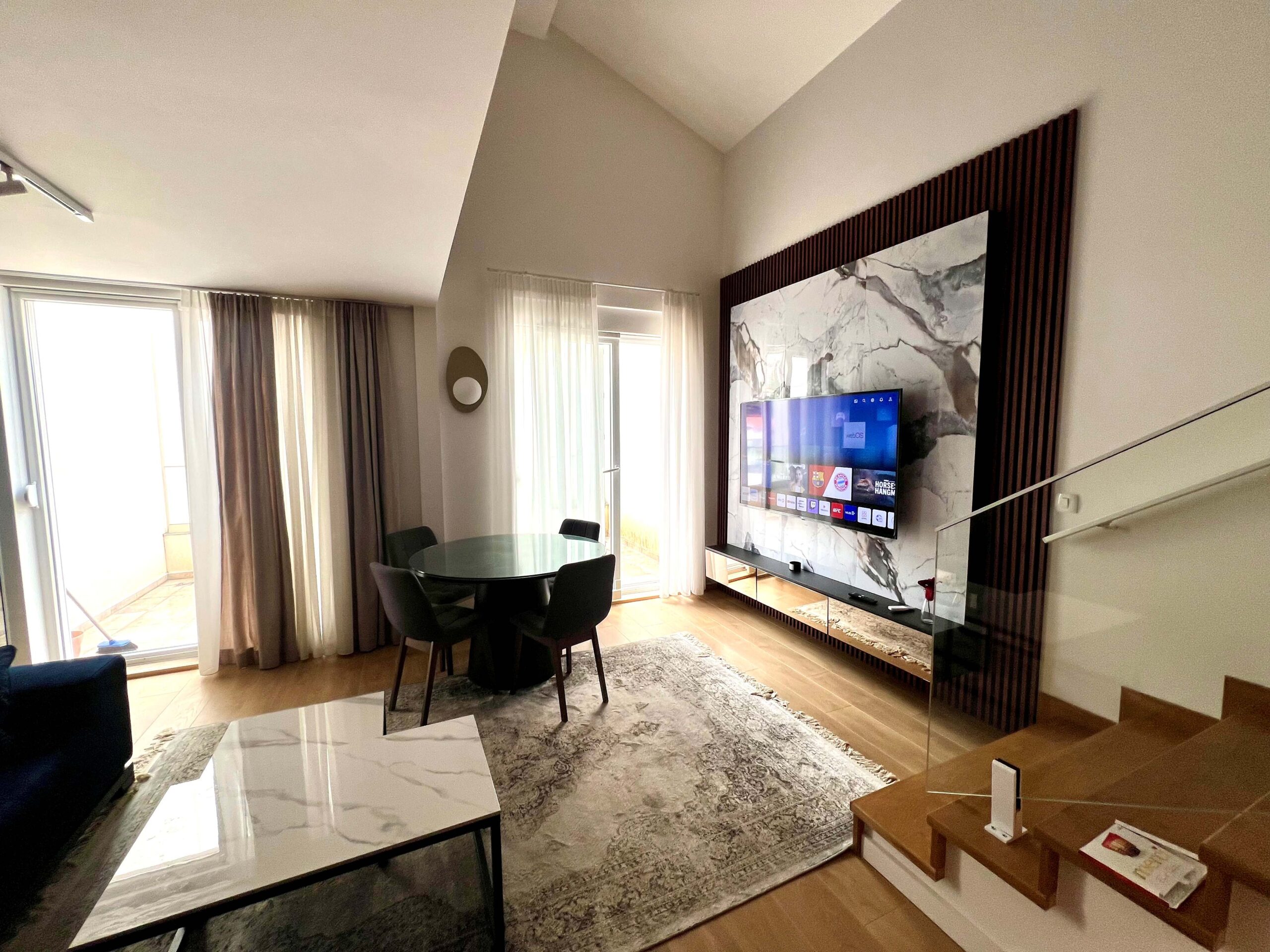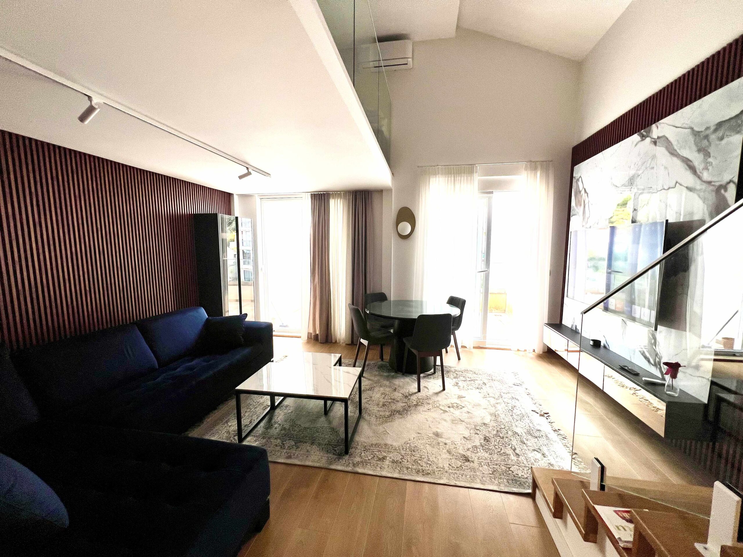 Opis: Na prodaju, moderan komforan jednosoban stan u kvalitetno gradjenoj zgradi, sa liftom i video nadzorom. Udaljenost do plaze je 500 metara. Po listu nepokretnosti ima 85m2. Sastoji se od: hodnika, kuhinje, toaleta sa tuš kabinom, velike dnevne sobe sa trpezarijom i velike terase, sve to na prvom nivou. Na spratu se nalazi ogromna galerija sa spavaćom sobom i svojim kupatilom. Izlaz na terasu ima je iz dnevne sobe. Stan je orijetisan sjevero – istočno. U neosrednoj blizini su velike prehrambene prodavnice, hoteli, restorani, škola, sve ono što budućem vlasniku omogućava udobiji život.
