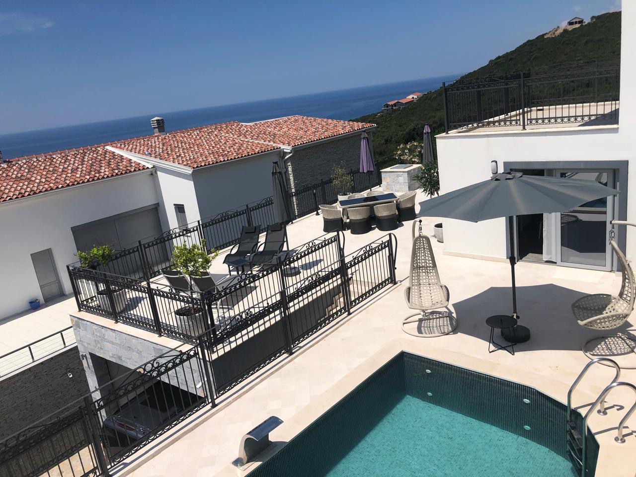 Opis: Na prodaju prelijepa vila sa izuzetnim karakteristikama. Ovaj luksuzni objekat prostire se na 153m2 unutrašnjeg prostora, uz prostrane terase koje pružaju idealnu priliku za opustanje i uživanje u prirodi. Vila se nalazi na placu od 500m2 i ima garažu površine 70m2, dovoljno prostora za više vozila. Ima 4 spvaće sobe sa pogledom na more, od kojih jedna ima i čajnu kuhinju. Bazen sa običnom vodom  savršeno je mjesto za osvježenje tokom toplih ljetnjih dana, dok iz svih prostorija objekta možete uživati u prelijepom pogledu na more, stvarajući jedintvenu atmosferu za svakodnevni život.