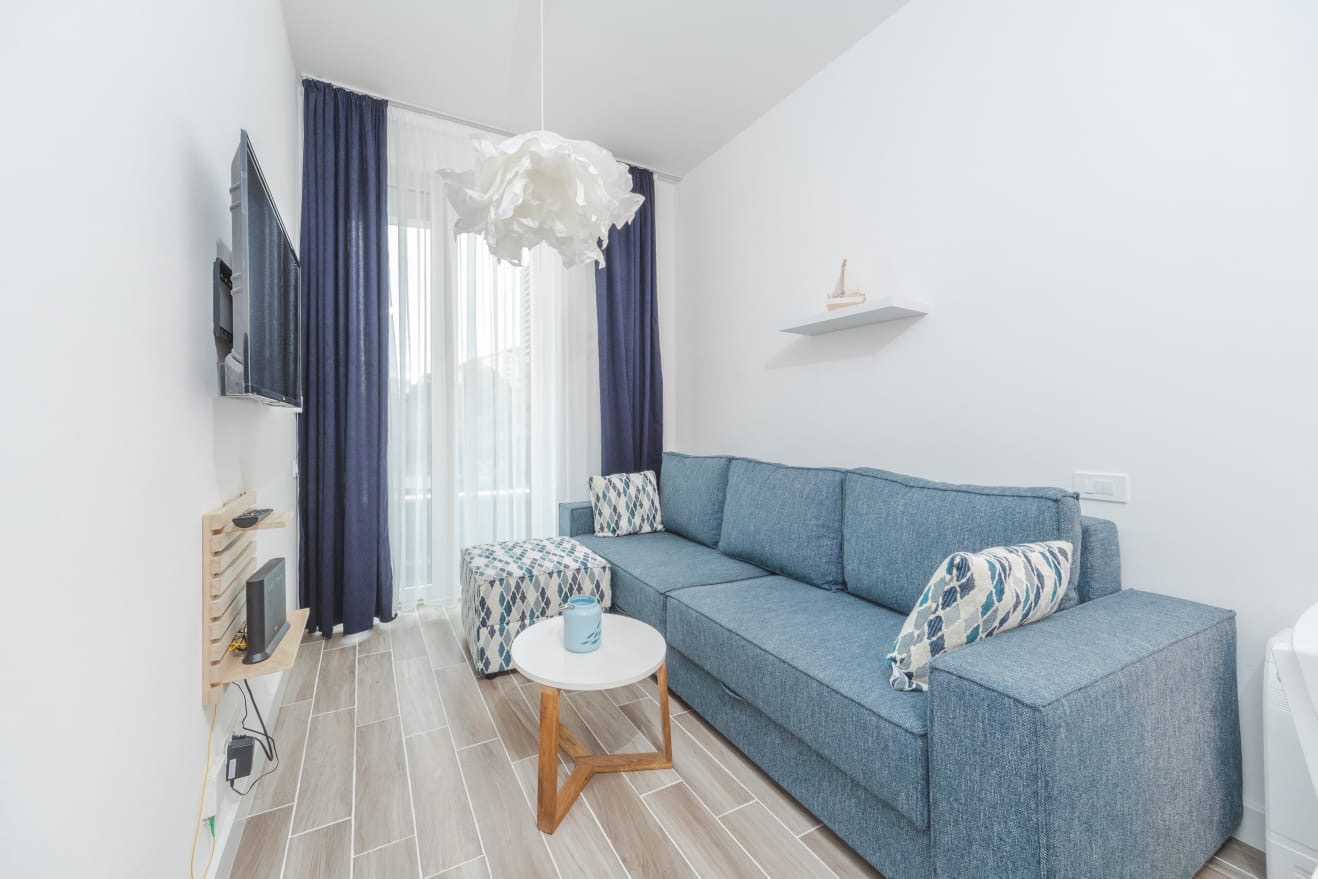 Raspored: hodnik, dnevni boravak, kuhinja, 1 spavaća soba, 1 kupatilo,1 terasa sa bočnim pogledom na more